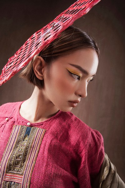 Một số mẫu áo gây ấn tượng mạnh nhờ kỹ thuật lọng tỉ mỉ, kết hợp những mảng miếng thổ cẩm nguyên bản mà NTK sưu tầm trong những chuyến đi lên vùng cao.