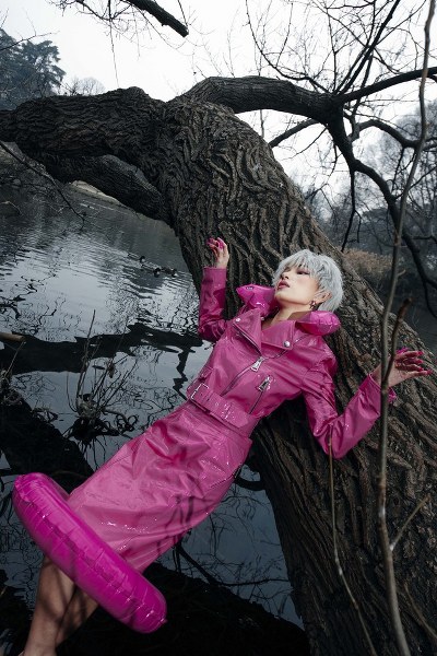 Bên cạnh outfit kỳ lạ, khán giả còn ngạc nhiên bởi độ “chịu chơi” của Châu Bùi trong những shoot hình thả dáng thần thái giữa hồ nước dưới thời tiết lạnh.