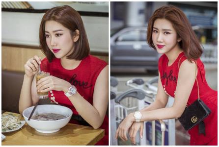 Diễn viên Thuý Ngân ra sân bay đi Hà Nội tham dự show thời trang. Người đẹp diện váy ren thanh lịch, phối giày cao gót ton-sur-ton. Cô cũng gây chú ý với set đồ hàng hiệu từ vali, túi xách và đồng hồ đến từ các thương hiệu đắt đỏ.