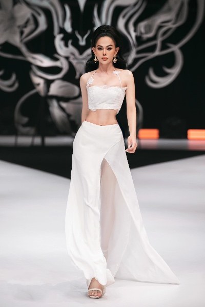 Thân hình quyến rũ, nữ tính cũng là lý do chính để cô nàng được mời tham gia show thời trang đình đám của một thương hiệu thời trang cao cấp vừa qua.