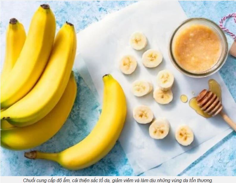 Chuối cung cấp độ ẩm, cải thiện sắc tố da, giảm viêm và làm dịu những vùng da tổn thương.