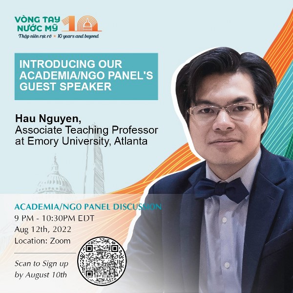 Vòng tay nước Mỹ 10 là sự kiện quy mô lớn nhất do Hội thanh niên, sinh viên Việt Nam tại Hoa Kỳ tổ chức thường niên, bao gồm chuỗi tọa đàm online và trực tiếp tại Washington D.C. trải dài từ ngày 6/8 - 21/8/2022, chương trình thu hút đồng hành của các tập đoàn lớn tại Việt Nam như MB Bank, PNJ, FPI, SSI, Shopee và các chuyên gia, kiều bào Việt trong ngành với hàng chục năm kinh nghiệm làm việc tại Mỹ và đa quốc gia.