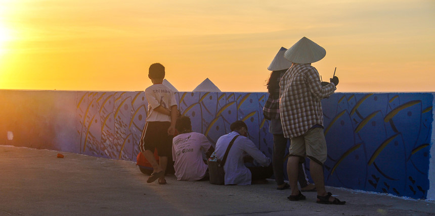 Những người dân cũng tụ tập ra đây sau một ngày làm việc bận rộn. Cái nắng hoang hoải khi chiều tà cũng không giấu được vẻ hào hứng trên gương mặt họ. Chị Hoài, một người dân sống cách đó không xa hy vọng con đường mới sẽ thổi một luồng gió mới cho du lịch của đảo Lý Sơn. "Tôi cũng hy vọng là với con đường này, nhiều du khách sẽ biết tới huyện đảo Lý Sơn và sẽ quay trở lại đây".