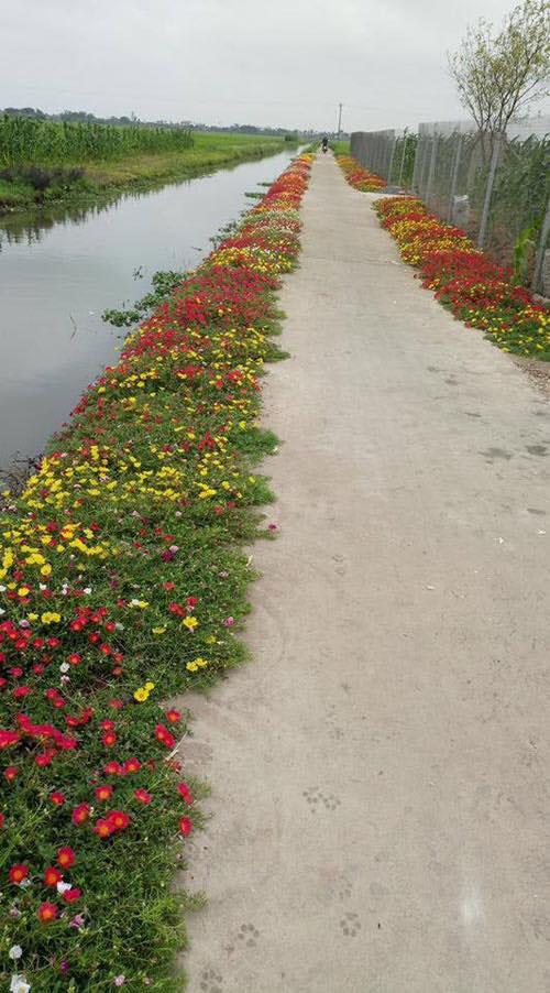 Ai nấy đều phải "đổ gục" trước vẻ đẹp của những bụi hoa mười giờ đầy sắc màu đỏ, vàng, hồng,… nở rực rỡ, trải dài con đường nông thôn nhỏ tại huyện Hải Hậu, Nam Định.