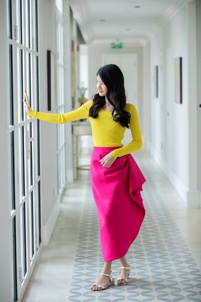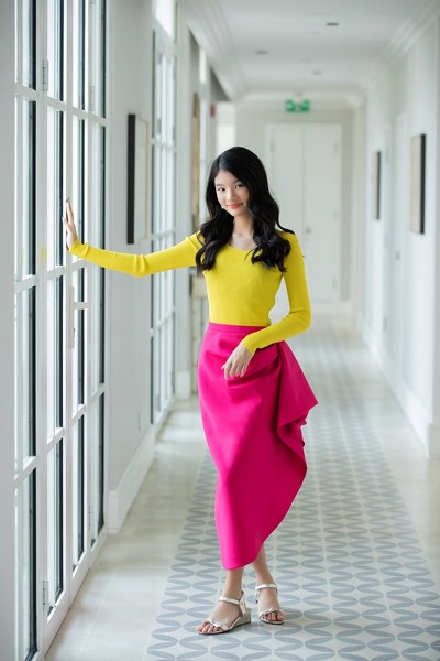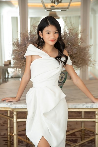 Ở tuổi 12, con gái của Trương Ngọc Ánh - Trần Bảo Sơn thừa hưởng chiều cao nổi trội của mẹ, xinh đẹp, chững chạc và ấp ủ giấc mơ trở thành nhà thiết kế.