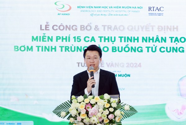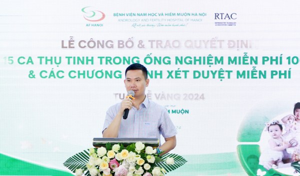 Vừa qua, Bệnh viện Nam học và Hiếm muộn Hà Nội tổ chức “Lễ công bố và trao quyết định 15 ca thụ tinh trong ống nghiệm miễn phí 100% và các chương trình xét duyệt miễn phí khác” trong khuôn khổ chương trình “Tuần lễ vàng 2024 – Thắp sáng ước mơ gia đình hiếm muộn”.