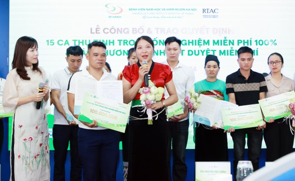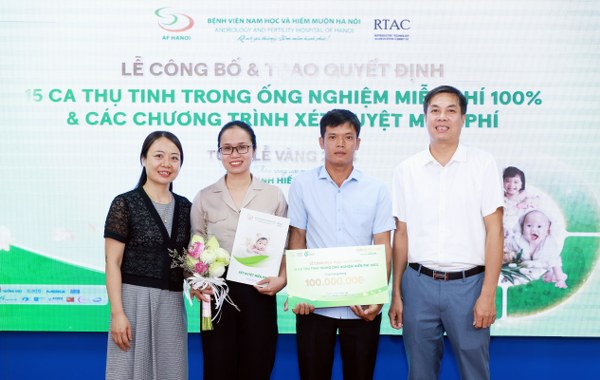 Lễ công bố và trao quyết định “15 ca Thụ tinh trong ống nghiệm miễn phí 100% và các chương trình xét duyệt miễn phí” đã được diễn ra ngày 23/6 tại Bệnh viện. Ngay sau buổi lễ, danh sách các gia đình nhận hỗ trợ sẽ được đăng tải công khai trên các phương tiện truyền thông; Website và Fanpage của Bệnh viện Nam học và Hiếm muộn Hà Nội. Các gia đình được nhận gói hỗ trợ miễn phí 100% chi phí thực hiện TTTON sẽ được Bệnh viện hỗ trợ toàn bộ chi phí xét nghiệm, kích trứng, chọc trứng, tạo phôi, trữ phôi, chuyển phôi…tương đương 100 triệu đồng/gói tuỳ từng trường hợp. Ngoài ra, Bệnh viện sẽ chi trả toàn bộ chi phí khám, xét nghiệm trước đó cho các gia đình đã thực hiện để hoàn thiện hồ sơ. Đây là năm thứ 6 liên tiếp Bệnh viện triển khai hỗ trợ miễn phí 100% chi phí thực hiện TTTON cho các cặp vợ chồng có hoàn cảnh đặc biệt khó khăn trên khắp cả nước.