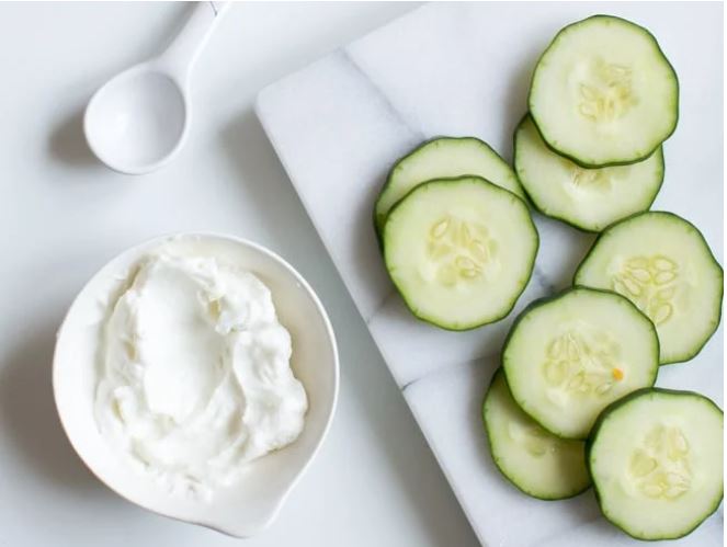 Lấy dưa chuột gọt vỏ và cắt thành từng miếng. Trộn với sữa chua, sau đó đắp mặt nạ lên mặt và để trong khoảng 20 – 30 phút.
