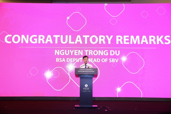 Cũng tại buổi lễ, ông Nguyễn Trọng Du – Phó chánh thanh tra Cơ quan giám sát ngân hàng trực thuộc Ngân hàng Nhà nước Việt Nam cho biết: "Chúng tôi kỳ vọng Công ty Tài chính LOTTE Việt Nam sẽ phát huy được những thế mạnh của Công ty LOTTECard ở Hàn Quốc, đóng góp vào việc phát triển kinh tế – xã hội, đồng thời tạo điều kiện thúc đẩy quan hệ hợp tác giữa Việt Nam và Hàn Quốc ngày càng tốt đẹp. Chúng tôi cam kết tạo điều kiện thuận lợi để các tổ chức tín dụng của Hàn Quốc nói chung và Công ty tài chính LOTTE Việt Nam nói riêng hoạt động hiệu quả, cạnh tranh bình đẳng theo đúng quy định của pháp luật Việt Nam."