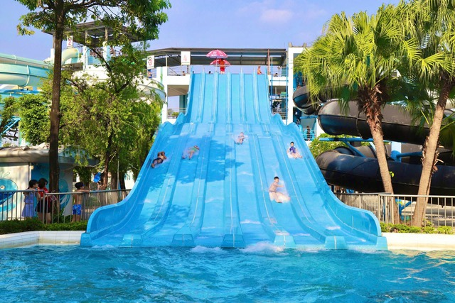 - Ngoài ra còn có Khu vui chơi và ẩm thực hiện đại, tiện lợi. Hệ thống trò chơi dưới nước hiện đại: đường trượt đa làn, máng xoắn tốc độ, bể tạo sóng vui nhộn và dòng sông lười thư giãn… hứa hẹn mang đến cảm giác sảng khoái, chinh phục và thư giãn cho mọi lứa tuổi.