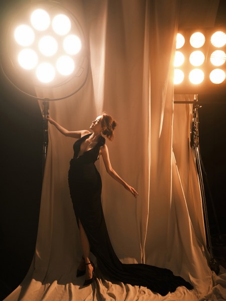 Không giống như lần mang thai đầu tiên, Nhã Phương khá thoải mái khi chia sẻ về hành trình làm mẹ lần thứ hai. Trong bộ ảnh, nữ diễn viên diện chiếc đầm dạ hội màu đen có phần cổ xẻ sâu gợi cảm.