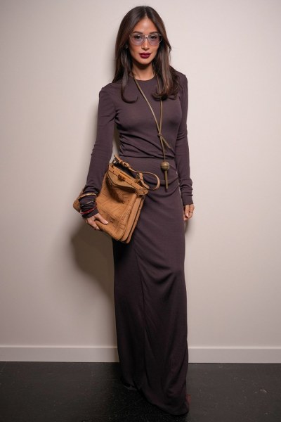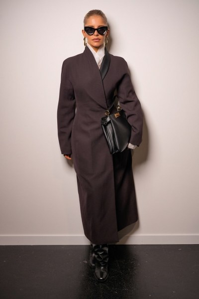 Fashionista Caroline Daur thể hiện nét thanh lịch với áo khoác dáng dài.