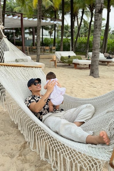 Sau bốn tháng sinh con, đến nay, Ngô Thanh Vân cho biết nhiều hôm, cô và chồng - doanh nhân Huy Trần - đuối khi thay phiên nhau chăm bé Gạo. "Bù lại, nhìn con cười là mệt mỏi tan biến. Hạnh phúc không phải lúc nào cũng rực rỡ, đôi khi chỉ là một hơi thở, một cái ôm của con", cô nói.