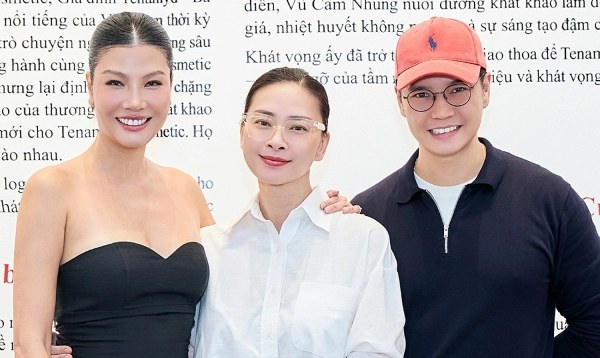Cuối tháng 10, cô bắt đầu dự sự kiện trở lại sau sinh, hội ngộ cựu người mẫu Vũ Cẩm Nhung (trái) ở một triển lãm tại TPHCM. Cô dự tính rời nghiệp diễn xuất trong hai, ba năm để dành trọn thời gian cho gia đình nhỏ.