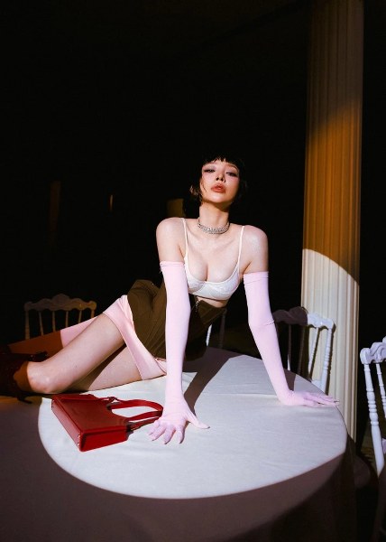 Cô thường xuyên chọn trang phục ôm sát, cúp ngực hoặc khoét sâu, thể hiện tinh thần tự do và chủ động làm mới mình.