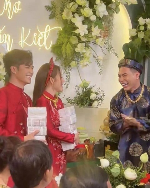 Theo chia sẻ từ Trương Thế Vinh, gia đình Gin Tuấn Kiệt chuẩn bị tới 14 tráp sính lễ, trong số đó có tráp chứa 10 xấp tiền mặt mệnh giá lớn cùng hộp trang sức.