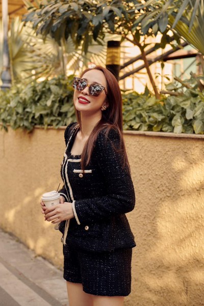 Ngoài những trang phục nhiều màu sắc, khi xuất hiện tại các sự kiện, không ít lần dàn diễn viên nữ của VFC lựa chọn trang phục tông đen với những điểm nhấn riêng.