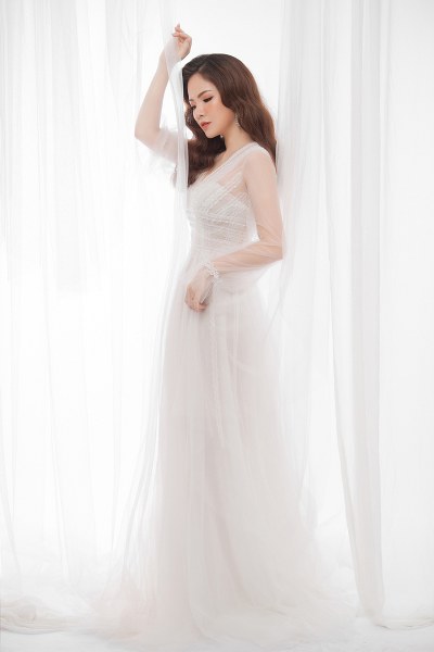 Người đẹp diện mẫu váy mang vẻ đẹp tinh khôi như buổi sớm mai mùa hạ thuộc bộ sưu tập xuân hè của Lek Chi.