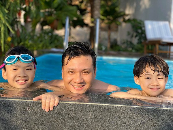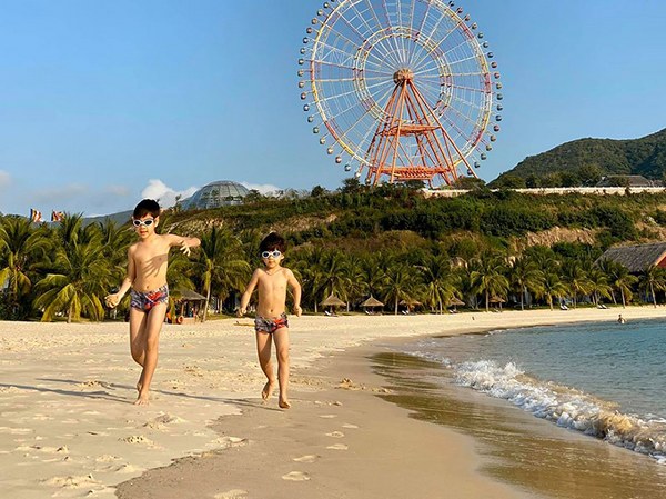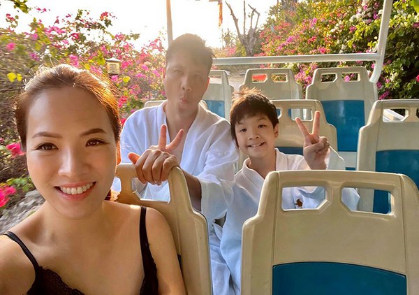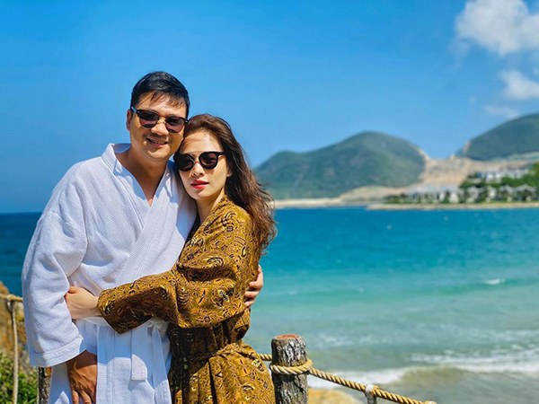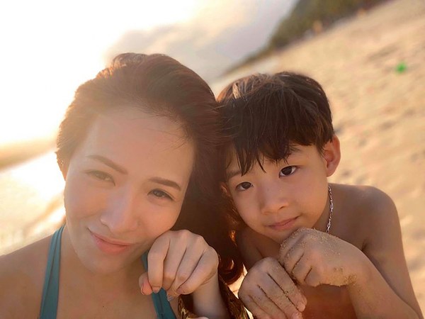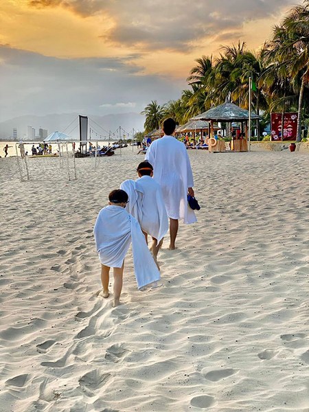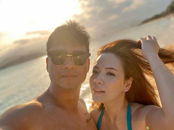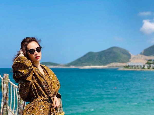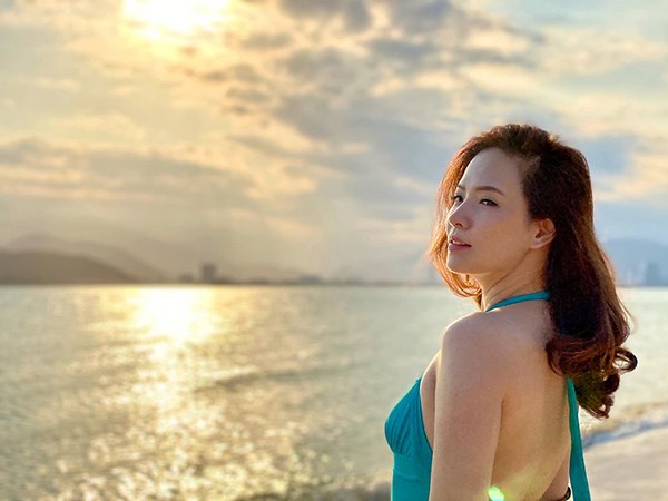 MC, diễn viên Đan Lê diện bikini, tạo dáng gợi cảm qua ống kính của ông xã - đạo diễn Khải Anh - khi cùng cả gia đình du lịch Nha Trang.
