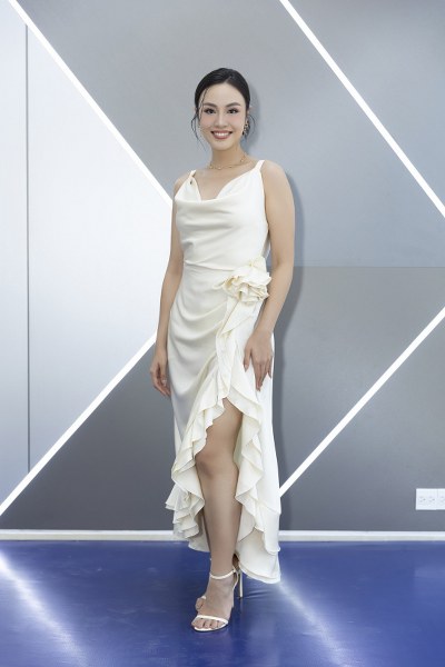 Á hậu Thảo Nhi Lê chọn chiếc đầm trắng thanh lịch tôn lên vẻ đẹp dịu dàng và quyến rũ.