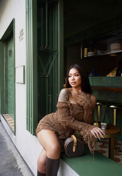 Trang phục được Huyền Nguyễn phối cùng túi cầm tay, boot trắng và trang sức, gợi nét cá tính, sắc sảo.