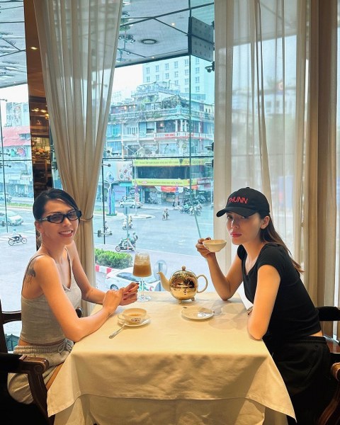 Kỳ Duyên (phải), Minh Triệu diện phong cách đơn sắc với các bộ đồ đơn giản bằng cotton như áo hai dây, quần shorts, áo phông, có tác dụng thấm hút mồi hôi tốt.