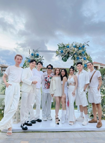Những sao Việt đầu tiên có mặt tại đám cưới Diệu Nhi và Anh Tú. Tất cả đều diện trang phục tông trắng thanh lịch, đơn giản.