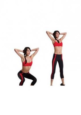 Đặt tay sau đầu, khuỷu tay hướng ra ngoài, đứng với hai chân dang rộng bằng vai. Đẩy hông ra phía sau và gập đầu gối cho đến khi đùi gần như song song với sàn nhà, ưỡn ngực hết cỡ.