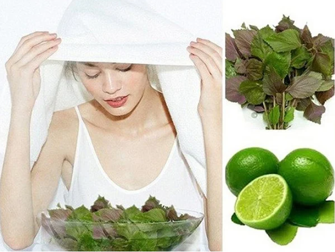 Bước 3: Đưa mặt lại gần chậu nước (cách khoảng 20 cm để tránh bỏng hơi) rồi trùm khăn lên trên đầu để hơi nước bốc lên mặt. Mỗi quy trình thực hiện xông mặt trị mụn bằng lá tía tô thường kéo dài 20 – 30 phút/ lần, sau đó rửa mặt với nước mát hoặc nước đá để se khít lỗ chân lông.