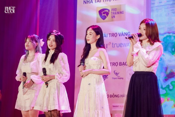 Bài hát "Có em bên đời bỗng vui" được thể hiện bởi sinh viên trường Báo lan tỏa không khí ấm áp đến toàn bộ hội trường