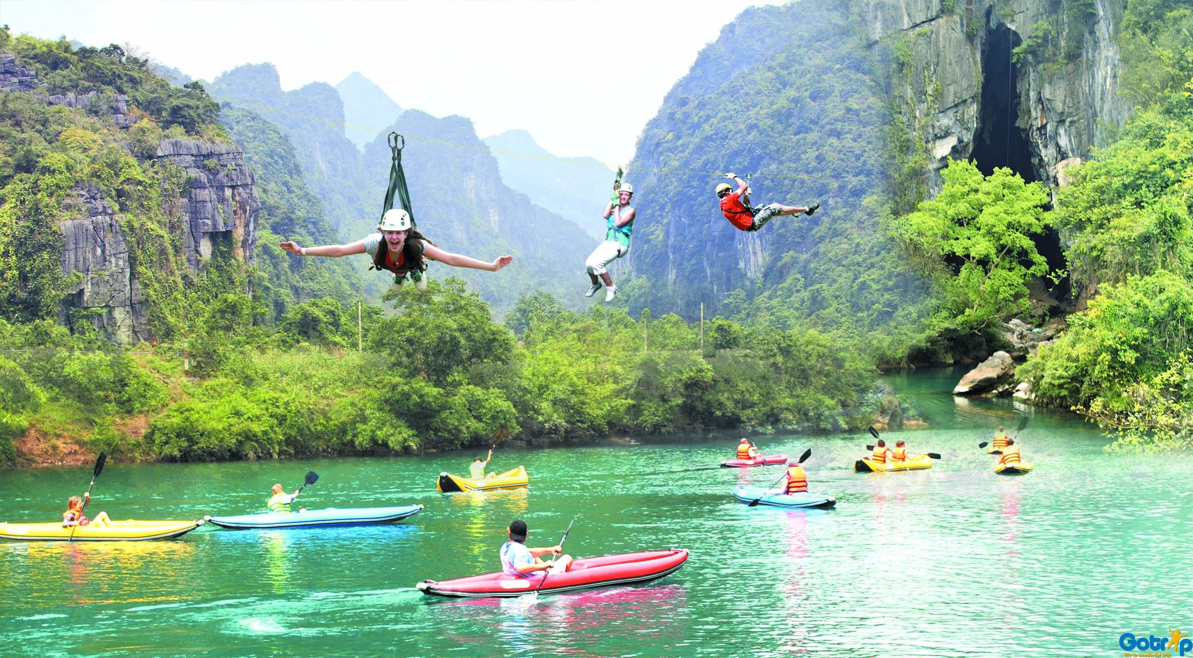 Không chỉ có thiên nhiên tuyệt đẹp mà những trò chơi mạo hiểm ngoài trời khác hẳn với mấy công viên nhân tạo. Này thì trượt zipline, chèo kayak, nhảy cầu, cảm giác được làn gió mát mơn man trên da thịt và đắm mình trong làn nước trong xanh của suối Mọoc mới đã làm sao.