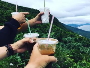 Còn gì tuyệt vời hơn khi được đứng giữa lưng chưng núi, trước mắt là biển xanh bao la, sau lưng là rừng cây xanh mát và uống cốc cà phê hay trà nóngVào những ngày đẹp trời và thời tiết lý tưởng, bạn còn được đắm chìm trong những cụm mây sà xuống, đúng nghĩa đèo Hải Vân