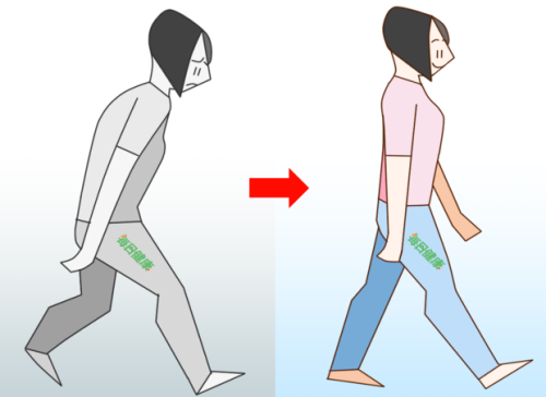 Đi kiểu này dần dần sẽ dẫn đến đầu gối cong, phải dựa vào cơ bắp đùi trước bên để chống đỡ. Từ đó khiến cơ bụng và cơ thắt lưng càng thêm suy nhược, hệ thống nâng đỡ luẩn quẩn cự sự lão hóa, càng ngày càng yếu hơn.