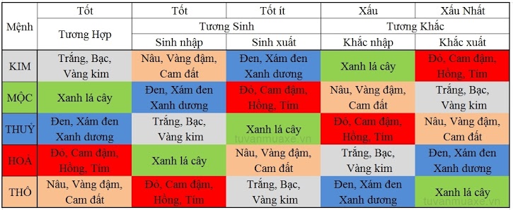Chọn màu mà mệnh của bạn tương sinh cũng hợp lý, khiến chiếc xe bền hơn và hợp với chủ nhân.