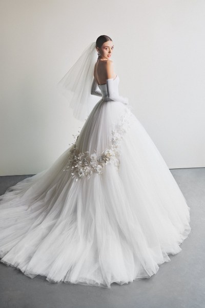 BST giới thiệu đa dạng kiểu dáng từ ball gown, fit and flare, A-line đến over-skirt hiện đại. Các xu hướng như tạo hình hoa hồng, nơ bướm và kết hợp khăn voan dài tạo nên điểm nhấn mới mẻ. Chất liệu cao cấp như mikado, satin, chiffon và soft tulle được sử dụng để tạo nên vẻ đẹp bay bổng và lãng mạn.