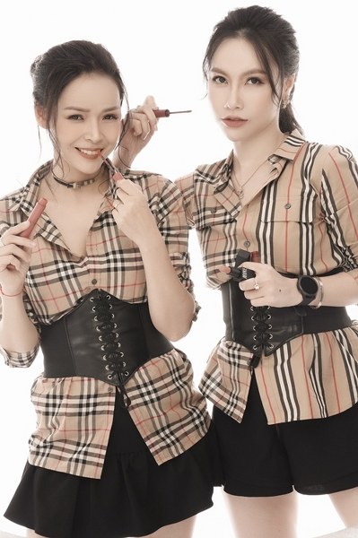 Cặp diễn viên \"Hôn nhân trong ngõ hẹp\" Diễm Hương - Minh Hà chọn trang phục đồng điệu, làm tóc và sử dụng phụ kiện giống nhau khi thực hiện bộ ảnh kỷ niệm 5 năm tình bạn.