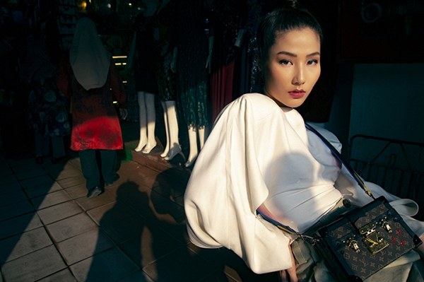 Cô thử nghiệm nhiều thiết kế kiểu dáng độc của nhà mốt danh tiếng, đồng thời thể hiện sự sắc sảo từ ánh mắt đến biểu cảm gương mặt.