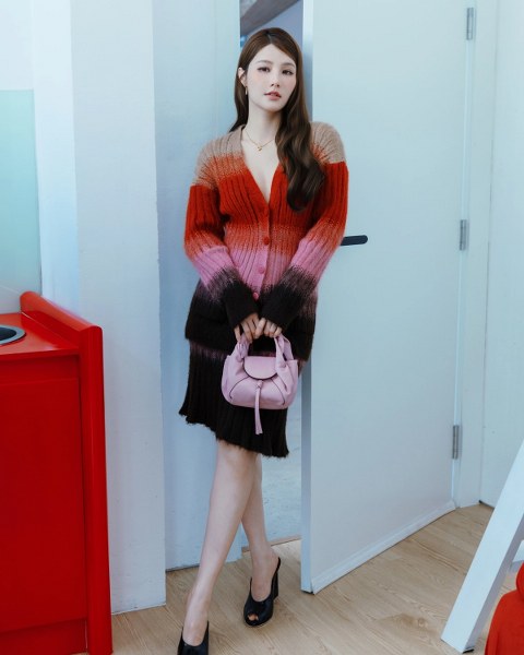 Cô sử dụng thêm túi bản nhỏ để tăng điểm nhấn.
