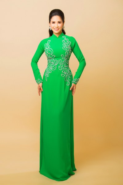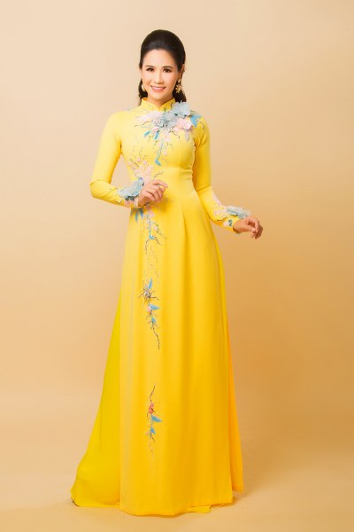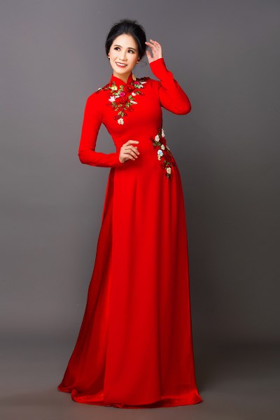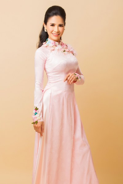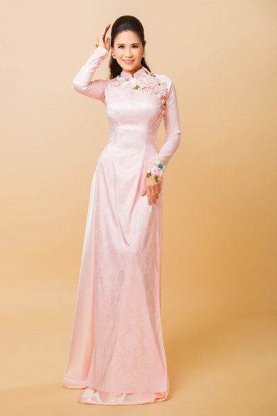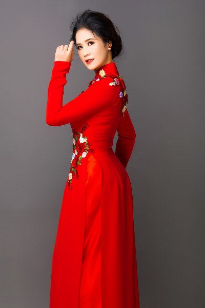 Nữ diễn viên chọn áo mang phom dáng truyền thống được điểm xuyết họa tiết hoa 3D, hoa thêu và ren dịu dàng.