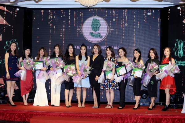 Bà Nguyễn Thị Ngọc Nữ -CEO thương hiệu trà giảm cân Jasmine Tea (giữa) trao trao bằng chứng nhận cho các tổng phân phối, nhà phân phối thương hiệu trà giảm cân Jasmine Tea