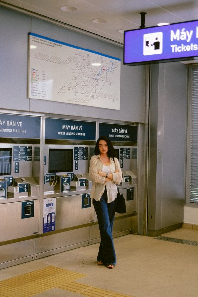 Cô thực hiện bộ ảnh tại một góc thuộc khu vực máy bán vé tự động. Theo diễn viên, cô ấn tượng với sự hiện đại, không gian sạch thoáng của metro.