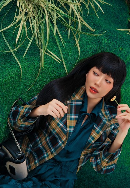 Cô diện bộ cánh từ thương hiệu nổi tiếng với gam màu trung tính kết hợp với hoạ tiết caro và dáng áo độc đáo.
