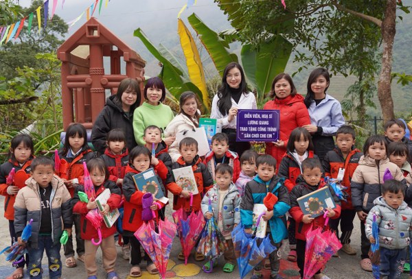 Tại 2 điểm trường, diễn viên Lương Giang đã hỗ trợ kinh phí giúp điểm trường đổ sân chơi với diện tích hơn 150m2 và tặng đồ chơi tạo cảnh quan đẹp cho khu vui chơi như thú nhún, đu quay…