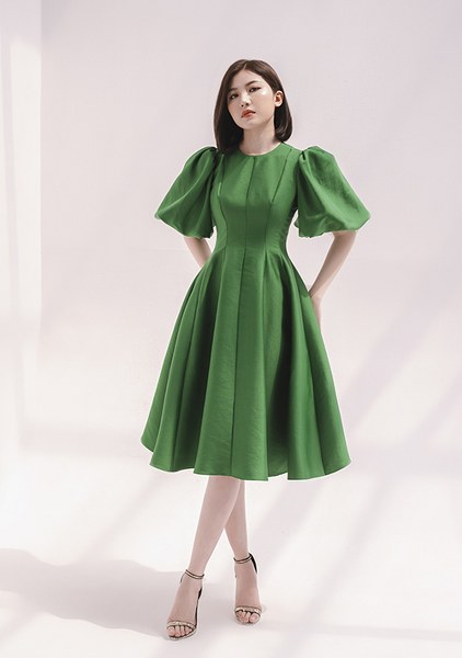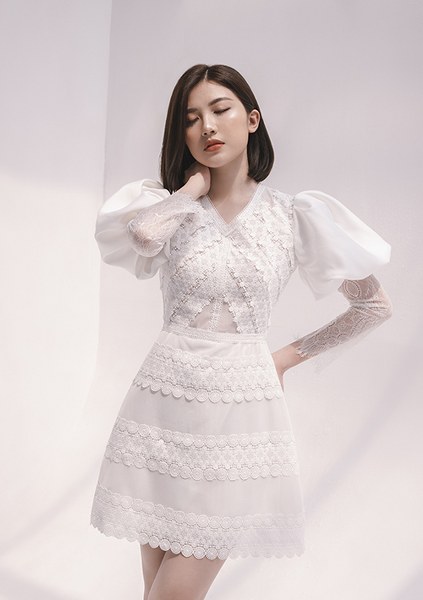 Diễn viên Lương Thanh trở nên kiêu sa, thanh lịch hơn khi diện các mẫu đầm thuộc bộ sưu tập mới của NTK Hà Duy.
