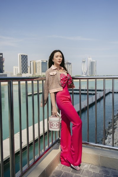 Diễn viên Lý Nhã Kỳ tạo dáng trên đường phố Qatar với các thiết kế mang phong cách trẻ trung, gợi cảm.