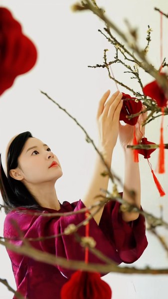 Diễn viên Midu phối áo bà ba gam màu tươi tắn cùng phụ kiện khi đón xuân.