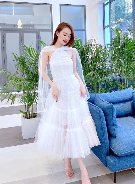 Diễn viên Nhã Phương thường xuyên diện đầm trắng với phong cách đa dạng, giúp cô tôn da, thanh lịch.