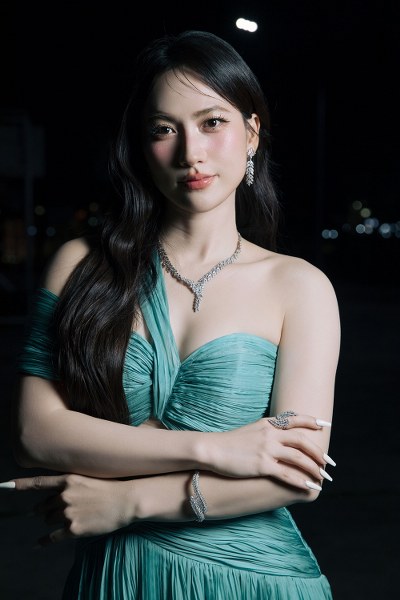 Cô diện váy dạ hội xanh ngọc của nhà thiết kế Lê Ngọc Lâm tại lễ trao giải Ngôi sao xanh hôm 11/1 ở TPHCM. Đầm cúp ngực, cut-out phần eo được phối cùng trang sức đính kim cương.