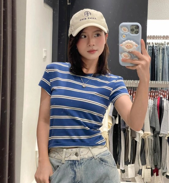 Nữ diễn viên cũng ưu tiên sự trẻ trung, năng động, tự nhiên trong cách ăn mặc. Đời thường, cô chuộng những món đồ cơ bản, thoải mái, dễ mặc như áo phông, áo ôm dáng, jeans.