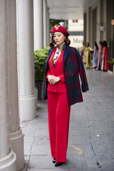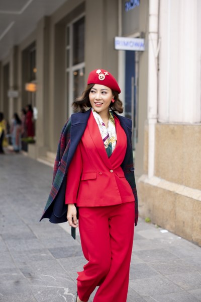 Chị em có thể mix trang phục dạo phố với vest theo gợi ý: Áo vest lịch sự sang trọng kết hợp với quần xẻ gấu năng động và mũ lồi là set đồ dạo phố tuyệt vời trong tiết trời này!